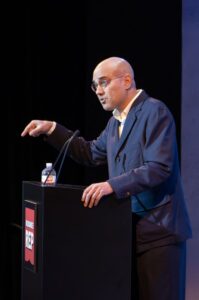 Akhtar grounded his talk in theatre history, citing institutions that were “offering (the) community a vital vision of the present, and proceeded to build a relationship around this search for the pulse of (their) time,” he said. “That’s what theatre can do that no other live form can do: It can bring the vital and new into the room with an immediacy that is transformative. It’s the thing that makes what we do irreplaceable.”